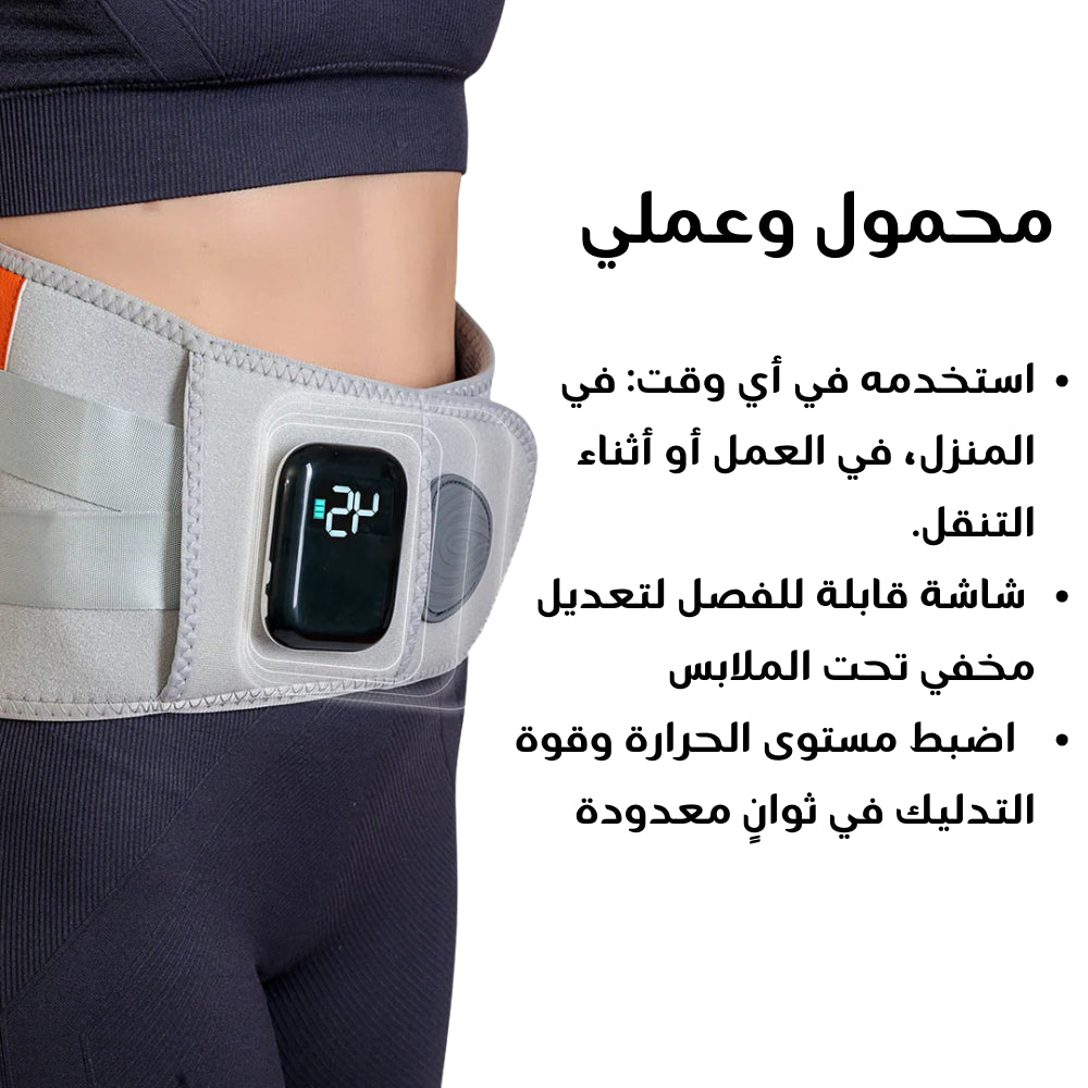 مع حزام الظهر الذكي، رح تكسر حاجز الوجع وتكون جاهز لأي حركة... تدفئة، مساج، ودعم بحزام واحد، لتعيش يومك وأنت مرتاح وواثق بحالك 100%
