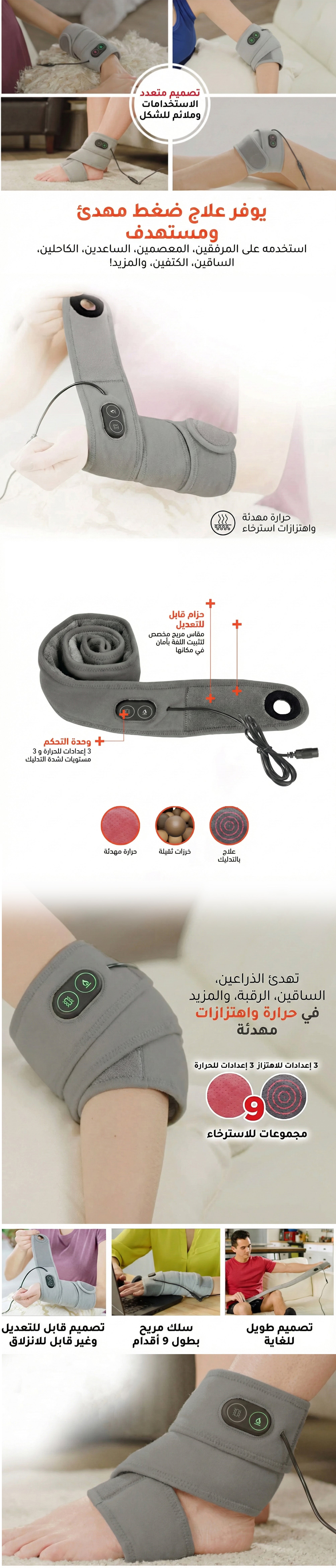 - بتلف عأي مكان بجسمك: تصميمها "المرن" بيسمحلك تلفيها عالإيد، الركبة، أو الرقبة.. بتثبت منيح بحزام التعديل وبتوصل الحرارة للمفصل دغري لراحة مخصصة إلك.